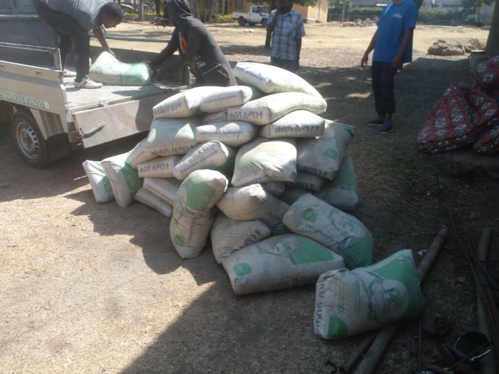 This photo captures the moment when Elio Ethiopia Prison Ministry (EEPM) delivered bags of cement to the prison authorities to complete the construction of the inmates’ kitchen building. In the image, EEPM volunteers and prison staff stand beside stacks of cement bags, ready to be used by the construction team.